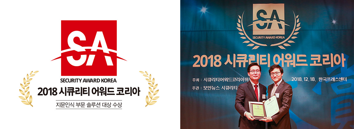 바이오인식 전문기업인 슈프리마(대표 문영수, 송봉섭 www.supremainc.com, KOSDAQ 236200)가 금일 한국프레스센타 국제회의장에서 진행된 시큐리티 어워드 코리아 2018 지문인식 솔루션 부문 대상을 수상하였다.