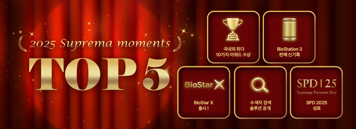2025년은 슈프리마에게 '기록과 도약'의 해였습니다. 글로벌 무대에서 10개의 어워드를 수상했고, BioStation 3은 역대 최고의 판매 실적을 기록했으며, 통합 보안 플랫폼 BioStar X와 수색자 검색 솔루션을 선보이며 포트폴리오를 확장했습니다. 무엇보다 SPD 2025를 통해 국내 파트너들과 함께 2026년의 공동 성장 방향을 명확히 하는 의미 있는 시간을 가졌습니다.
